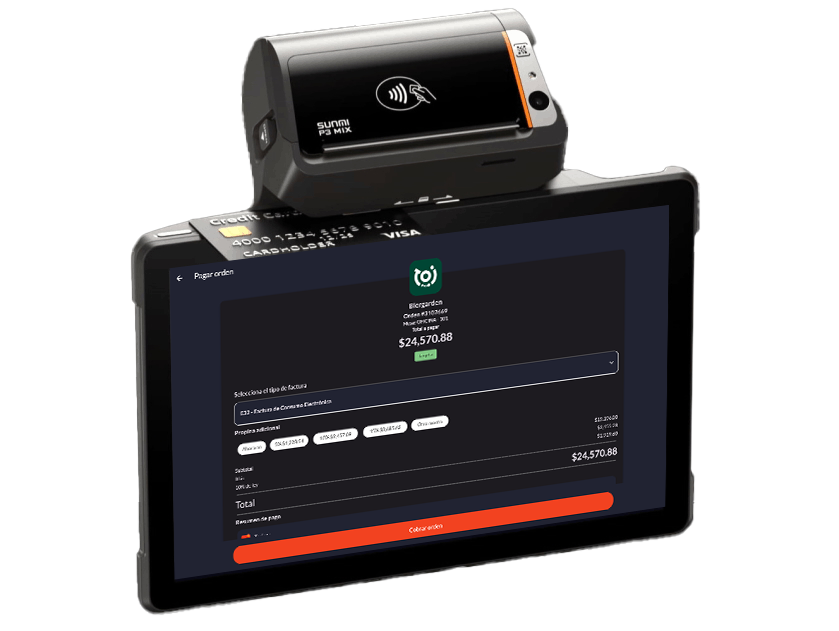 Facturación, cobro y pedidos en un solo dispositivo.